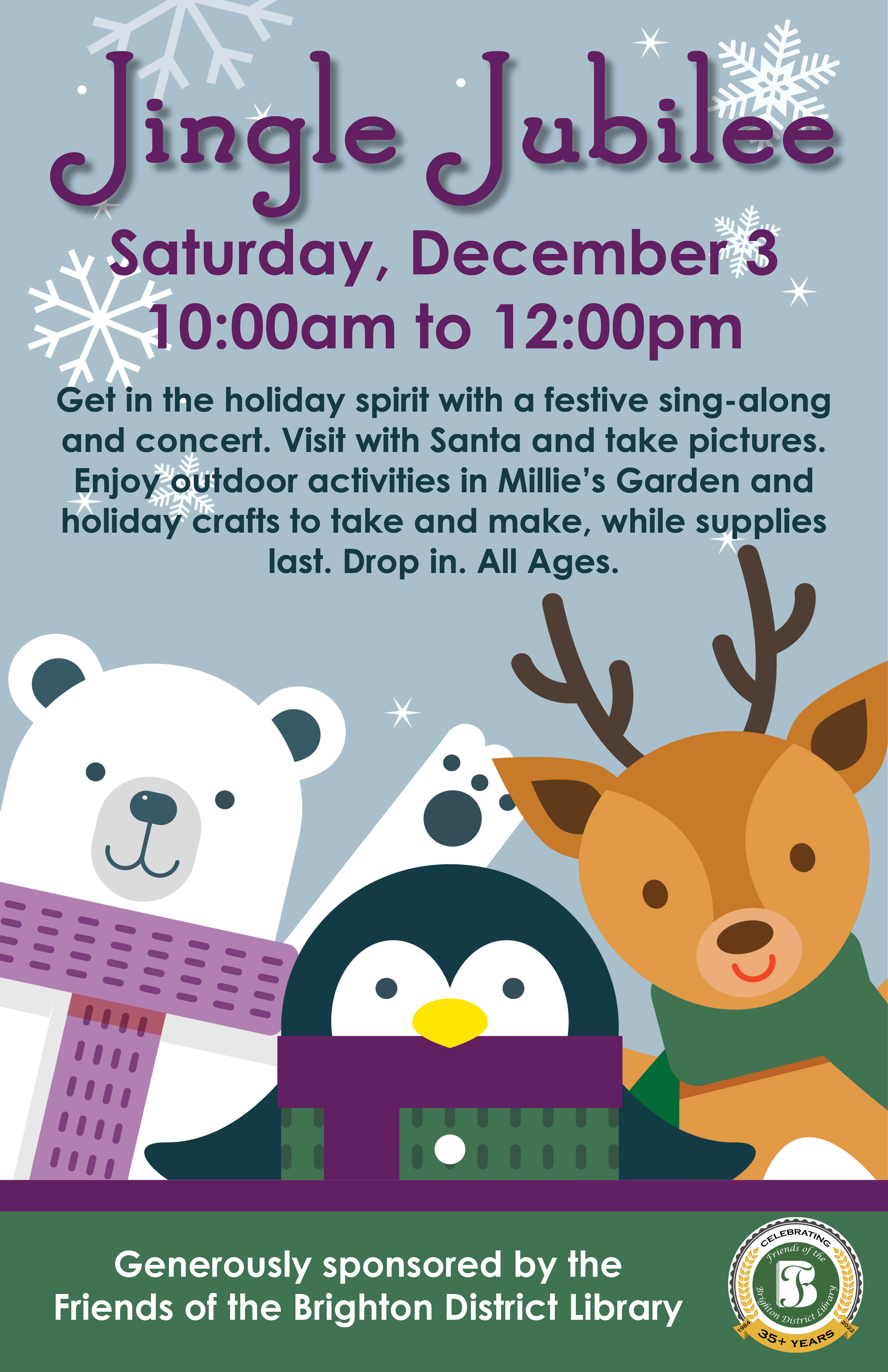 The Library will host its Jingle Jubilee celebration this Saturday from 10am to noon.