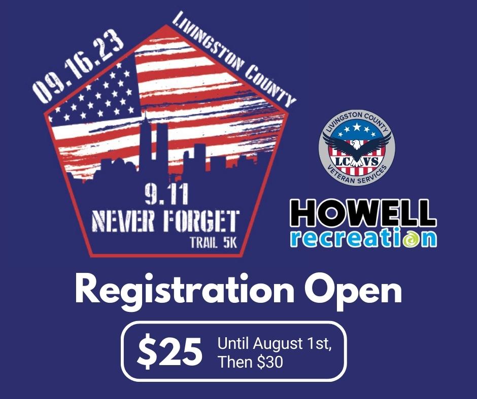 Livingston County Veteran Services, Howell Recreation, and local first responders are partnering to host the first annual 9/11 Never Forget 5K Trail Run/Walk. The race will be held on September 16th at Fillmore County Park off McClements Road in Genoa Township.