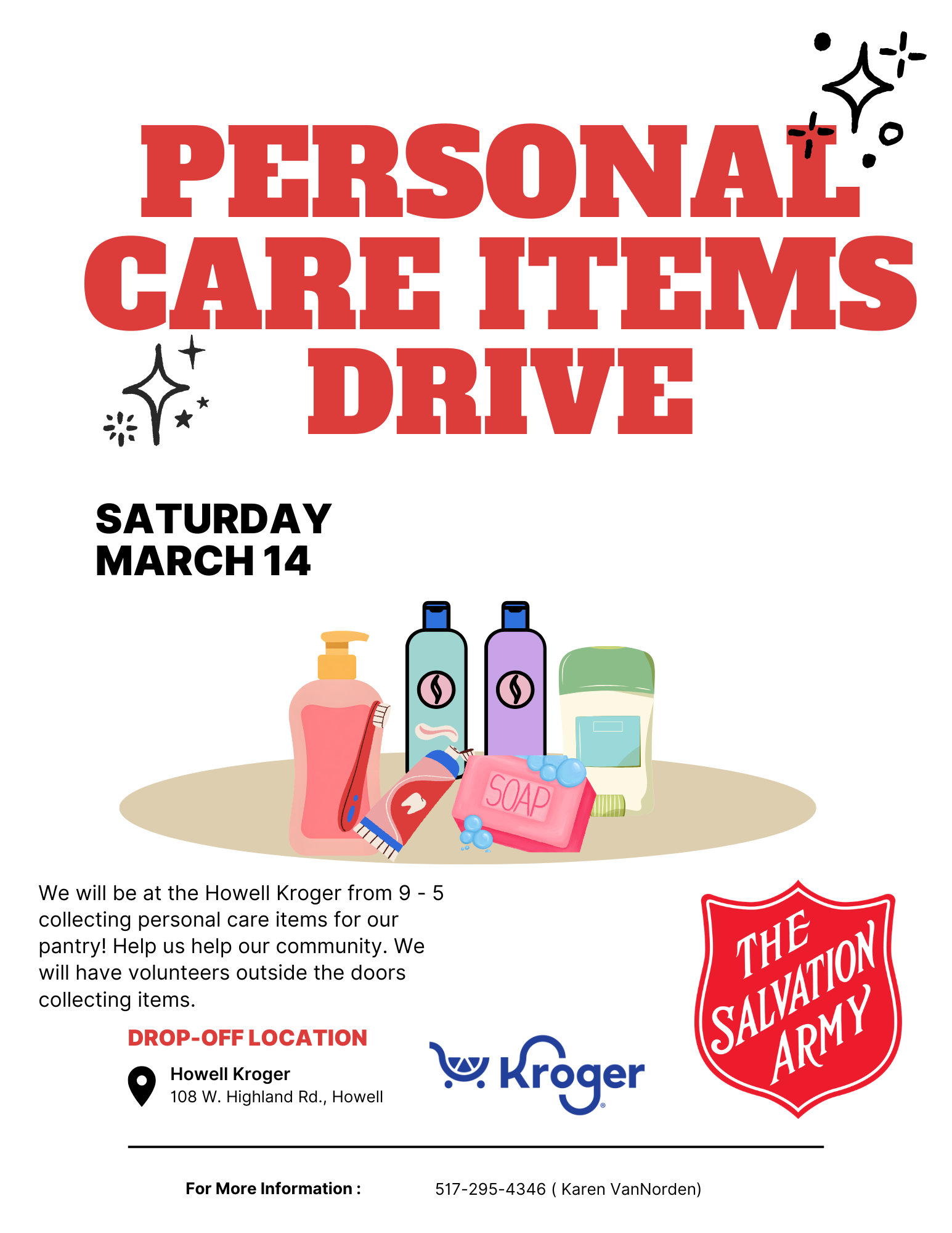 Personal Care Items Drive Saturday